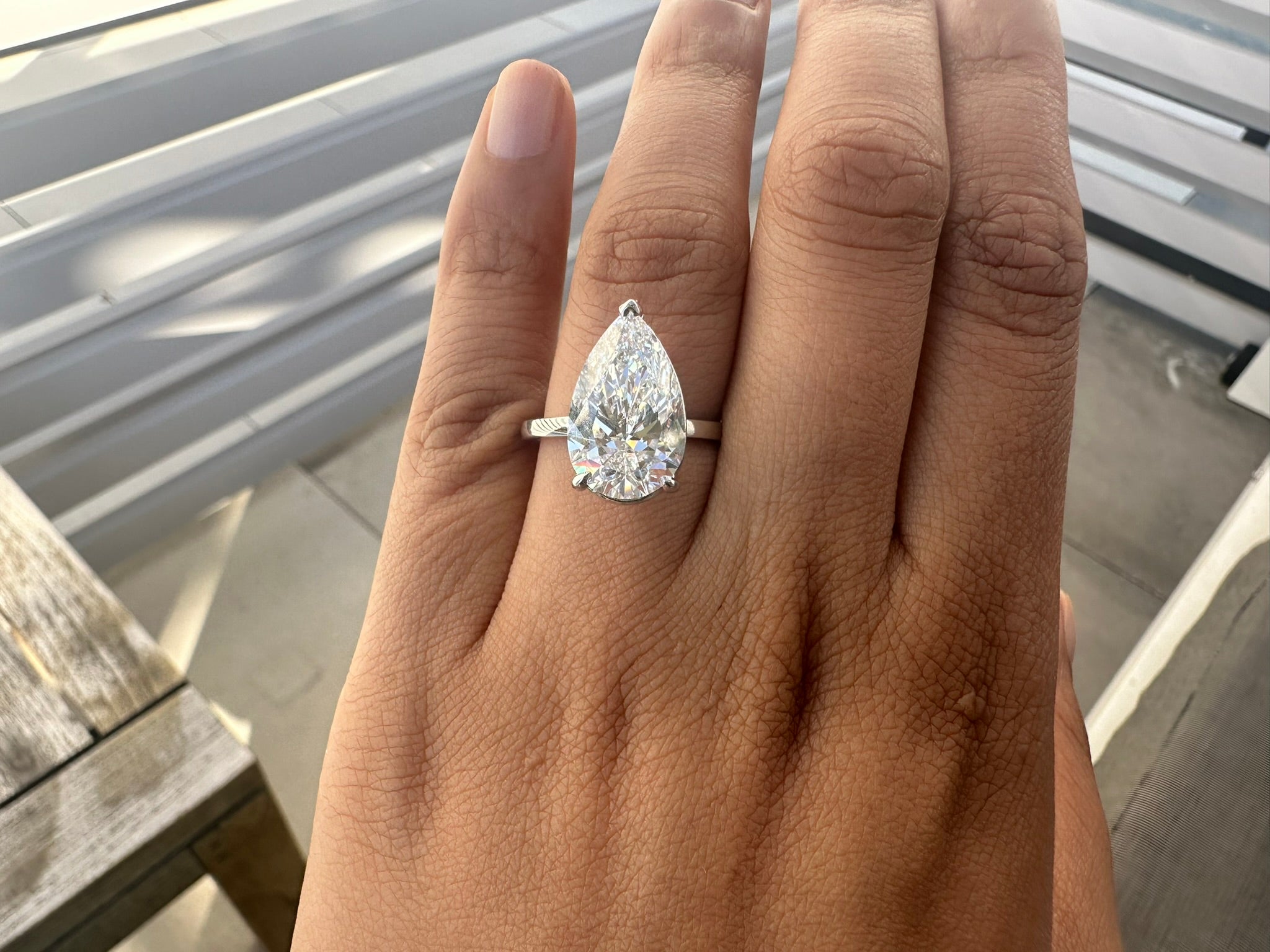 Three-Prong Pear Cut Diamond Engagement Ring With Hidden Halo