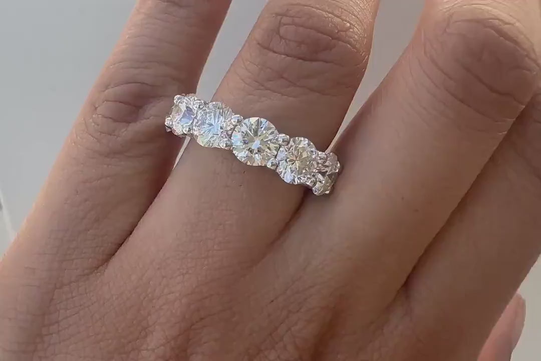 This eternity band features a seamless row of lab-grown diamonds in a prong setting perfect for stacking, marking a milestone, or wearing solo.