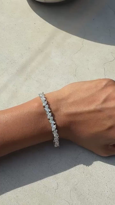 10 Carat Marquee and Round Lab Grown Diamond Tennis Bracelet
