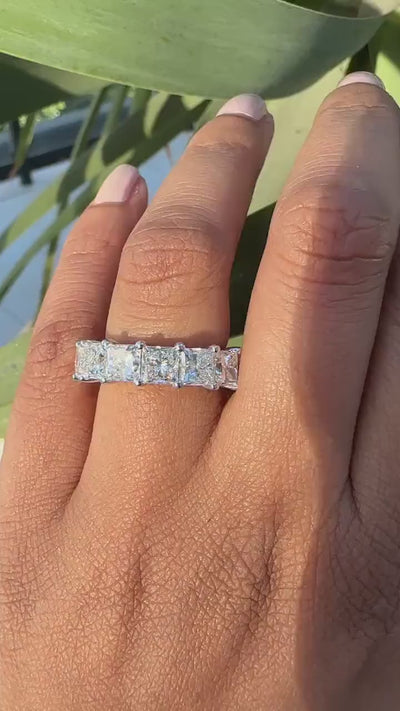 This eternity band features 8.00 carats of princess-cut, lab-grown diamonds in a sleek prong setting. Crafted in 14K gold, each diamond is ethically sourced and cut to perfection for maximum sparkle.
