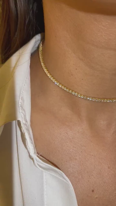A timeless essential, this tennis necklace features a single row of brilliant, round, lab grown diamonds set in a classic four-prong setting. Crafted in 14K gold and designed for everyday elegance and special moments.