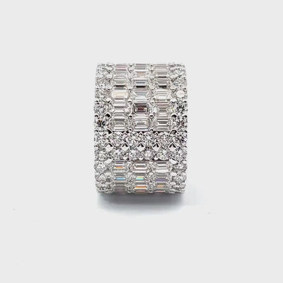 This 18mm eternity band features row of emerald & round cigar style lab-grown diamonds in a prong setting perfect for stacking, marking a milestone, or wearing solo.