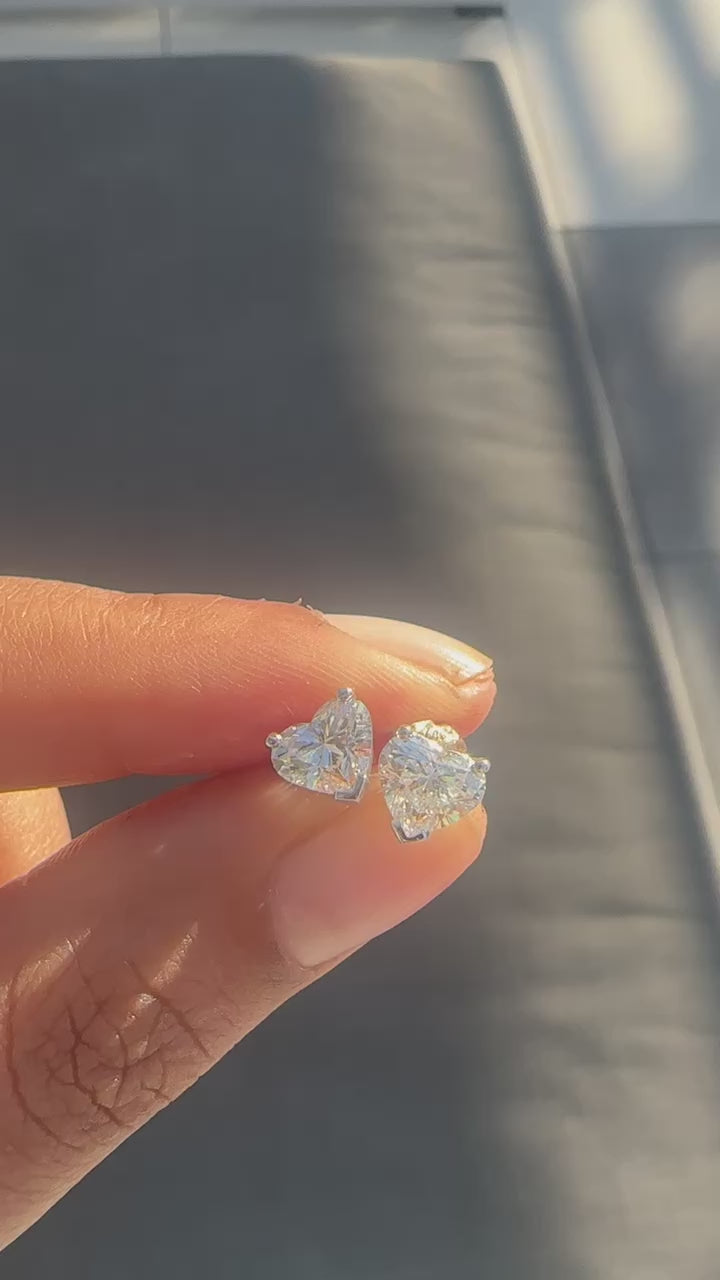 2 Carat Heart Shaped Lab Grown Diamond Stud Earrings