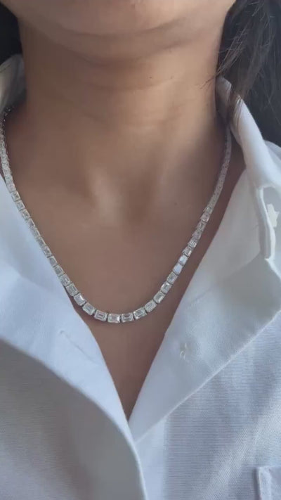 30 Carat Emerald Cut Lab Grown Diamond Tennis Necklace