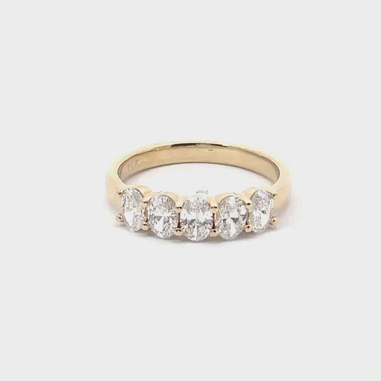 This elegant eternity band features five brilliant oval lab-grown diamonds set in a secure prong setting. Crafted in 14K gold, each diamond is ethically sourced and selected for its exceptional sparkle.