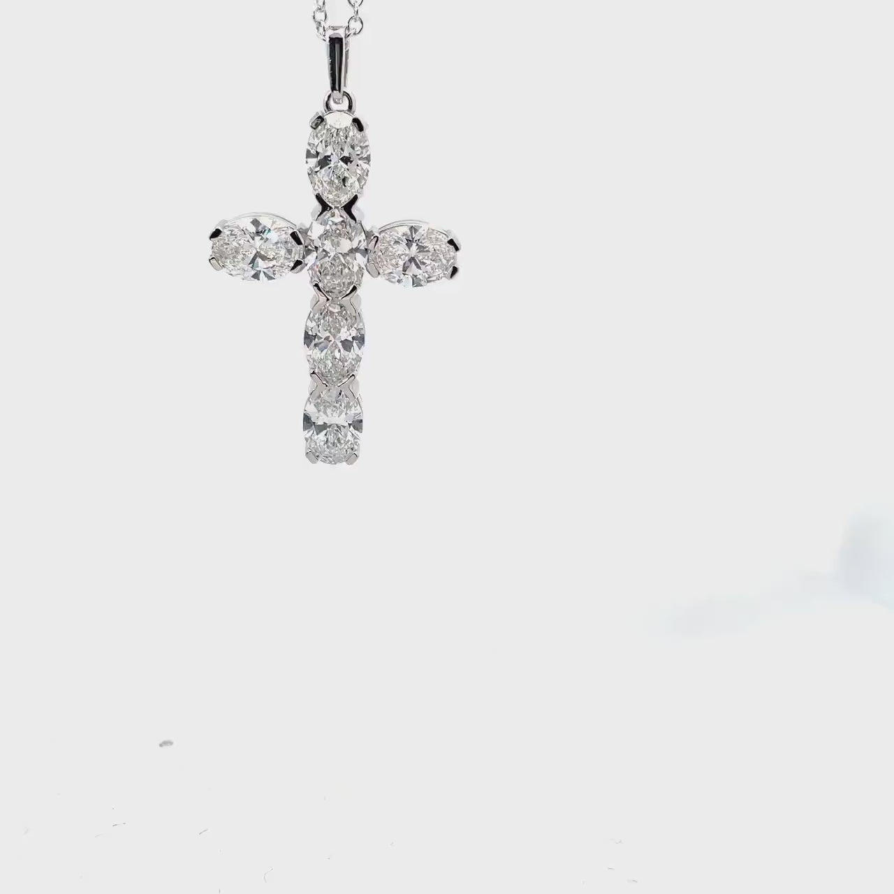 This elegant cross pendant features 6 brilliant oval cut lab-grown diamonds set in a sleek prong setting for maximum sparkle. Crafted in solid gold and available in 6 carat total diamond weight.